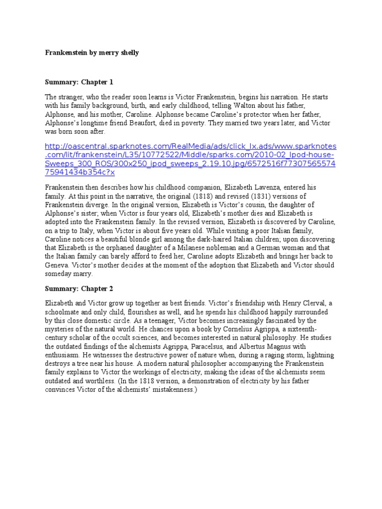 1 8 Chapter Summary Frank Pdf Frankenstein